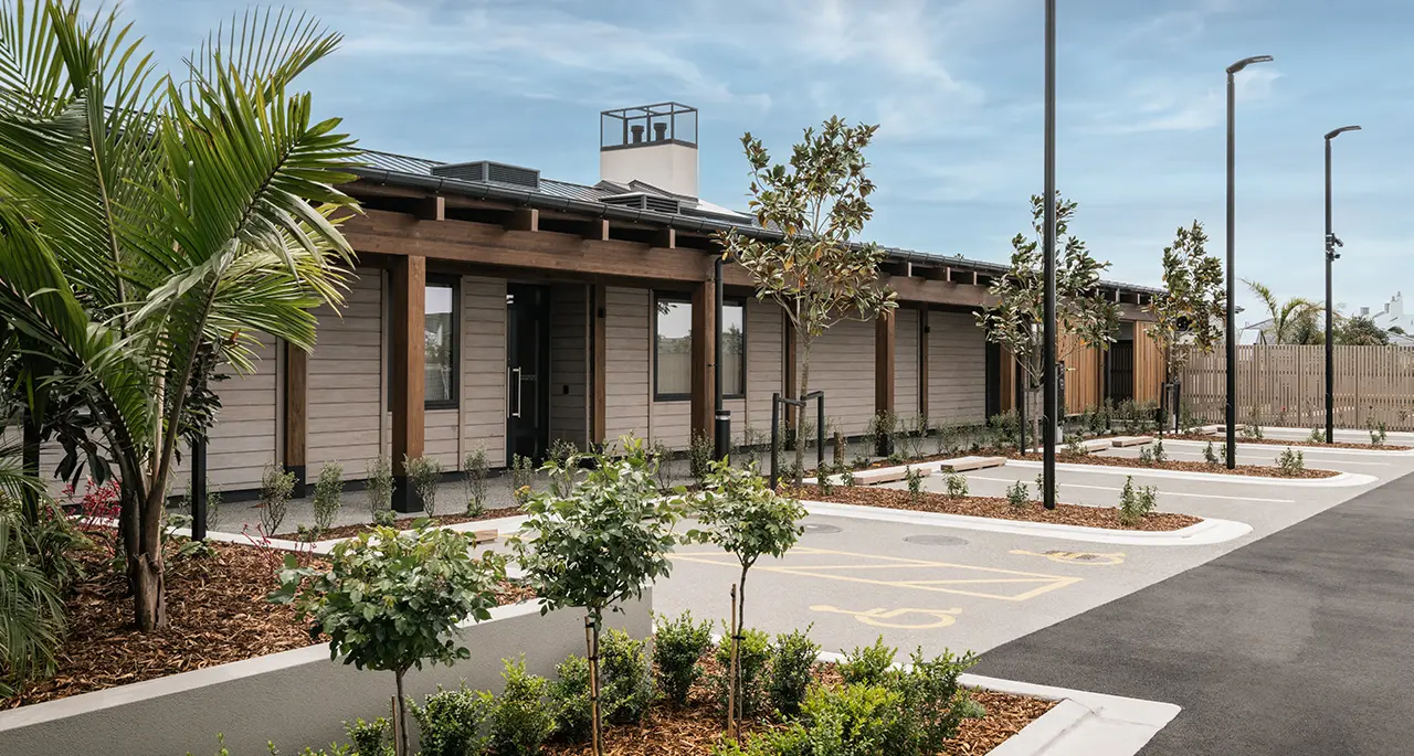 The Pavilion is a 3,000m² central community facility at Pacific Lakes Retirement Village, designed to be the social heart of village life. Constructed on concrete strip footings and slab, the building features a hybrid glulam and CLT structure, cedar weatherboards, timber and steel joinery, and large in-situ concrete panels and fireplaces. As a highly complex and technical build, the project demanded exceptional collaboration and coordination across all stakeholders. Project managers Greenstone/Colliers can attest to C3’s collaborative delivery approach and commitment to quality throughout the build.